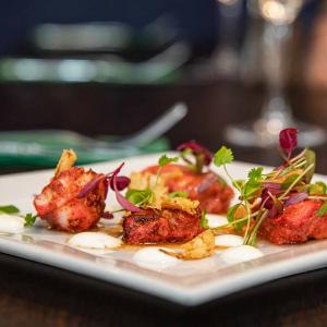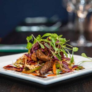 Crispy Beef Brisket, Baby Onions, Smoked Bacon, Green Beans, Broccolli,